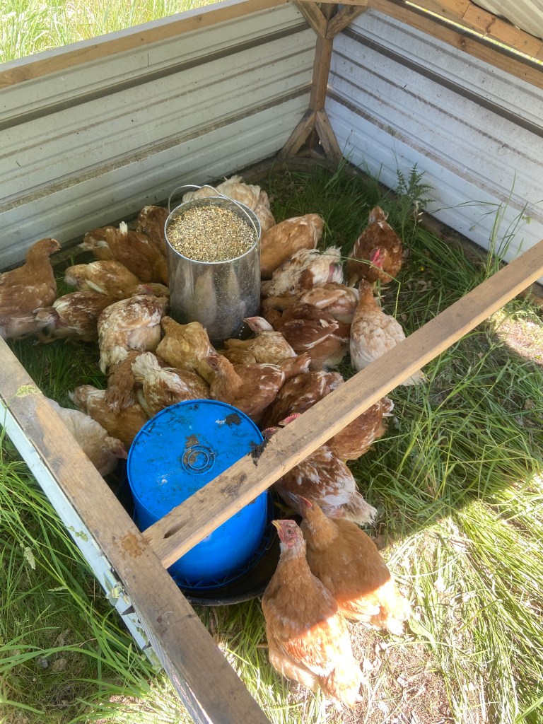 We currently raise one large batch of freedom ranger chickens summer to fall. Our chickens are moved to fresh pasture frequently and fed out on fresh ground transitional/organic soy free grains. We sell them as whole birds, by the pound. Our current price is $5/lb. Please let us know if you’d like to put a deposit down for fall chickens for 2022, Your freezer will thank you! 🐔 (or inquire about our current *limited* supply)
